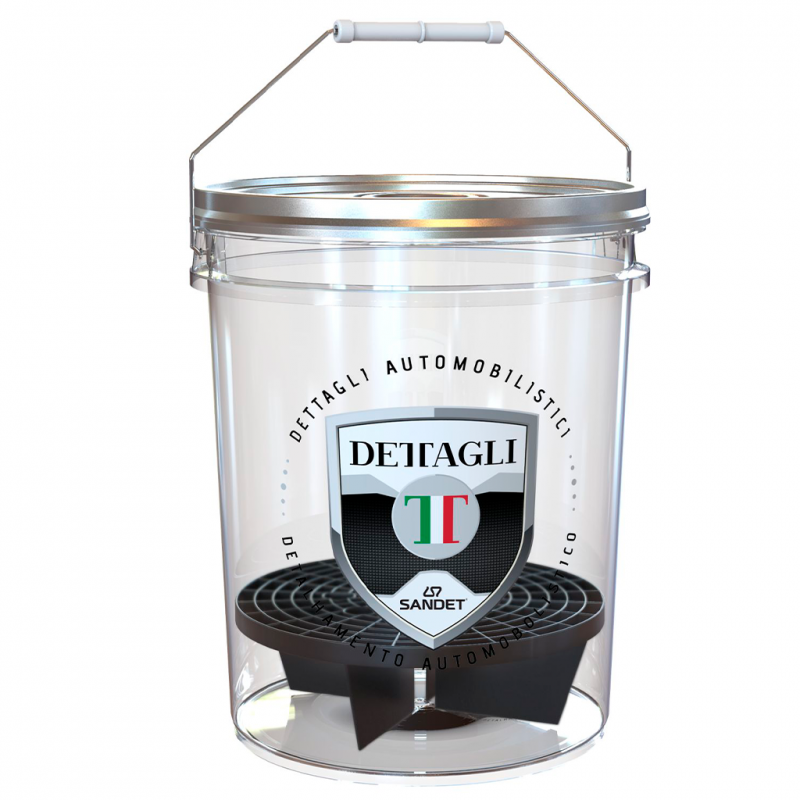 O Balde com Separador de Partículas Dettagli é equipado com alça metálica e tampa, proporcionando praticidade no manuseio e armazenamento. O seu diferencial está no separador de partículas integrado, que impede que as impurezas acumuladas no fundo do balde entrem em contato com esponjas, luvas ou toalhas de microfibra durante o processo de lavagem.