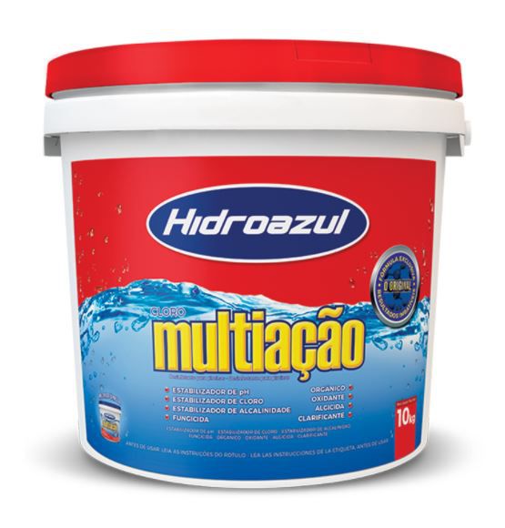 Dicloroisocianurato de Sódio. Cloro multifuncional azul. Granulado com dissolução rápida muito prático porque reune várias funções em um único produto: Forte ação Desinfetante; Algistático com proteção contínua; Exclusiva função Fungicida; Estabilizador de cloro com proteção prolongada; Oxidante de matéria orgânica gerando maior rendimento; Clarificante que auxilia o processo de floculação de sujeiras deixando a água cristalina; Não altera pH nem altera Alcalinidade mantendo o equilíbrio químico da água.