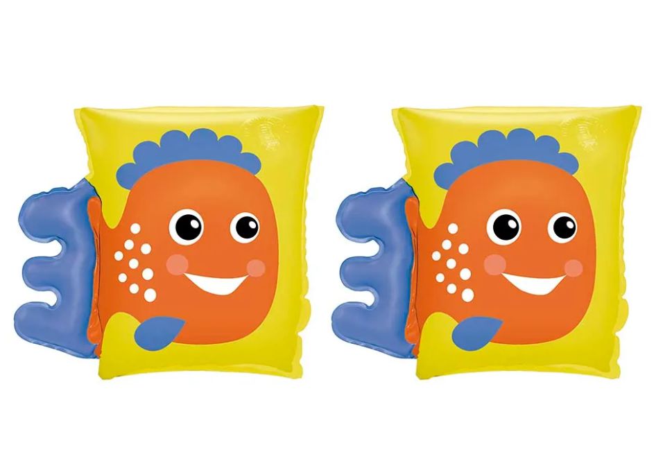 Com estampa de peixinho, as Boias de Braço Bichinho da Mor possuem quatro diferentes opções de cores predominantes: Azul, Amarelo, Rosa e Verde. Possuem duas câmaras de ar independentes, o que dá mais segurança para os pequenos, pois em caso de furo ou esvaziamento acidental de uma delas a outra câmara garante sua estabilidade na água. Recomendadas para crianças entre 3 e 6 anos, possuem duas válvulas de segurança e acompanham kit para reparo. Atenção! Este não é um equipamento salva-vidas. Nunca deixe crianças sozinhas perto da água sem supervisão de um adulto.
