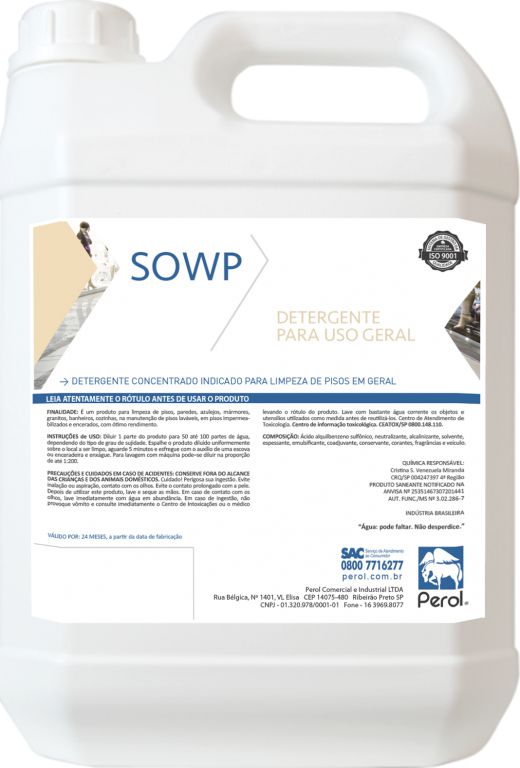Indicado para limpeza e manutenção diária de pisos tratados. Não agride o filme e possui polímeros em sua formulação que ajudam na manutenção do brilho. Sowp possui ótimo rendimento devido sua alta diluição.