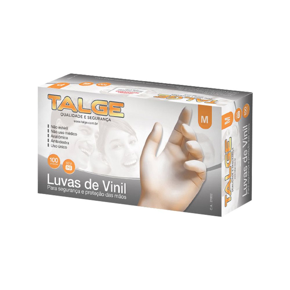 Luva de segurança para proteção das mãos confeccionada em resina de PVC (vinil), ambidestra, anatômica, não estéril, de uso único, com pó bioabsorvível. Caixa c/ 100 unidades.